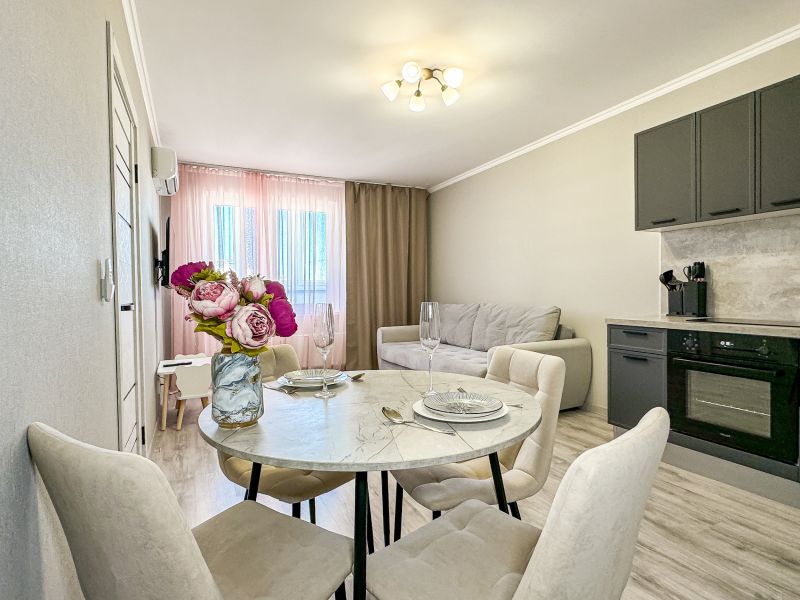 Апартаменты расположены в спальном районе курортной Анапы. До аэропорта Витязево можно доехать за полчаса, а до железнодорожного вокзала – 20 минут на авто. Недалеко – зоны отдыха, парк аттракционов, аквапарк и прочие туристические локации, а также большой выбор ресторанов, баров, кафе и магазинов.